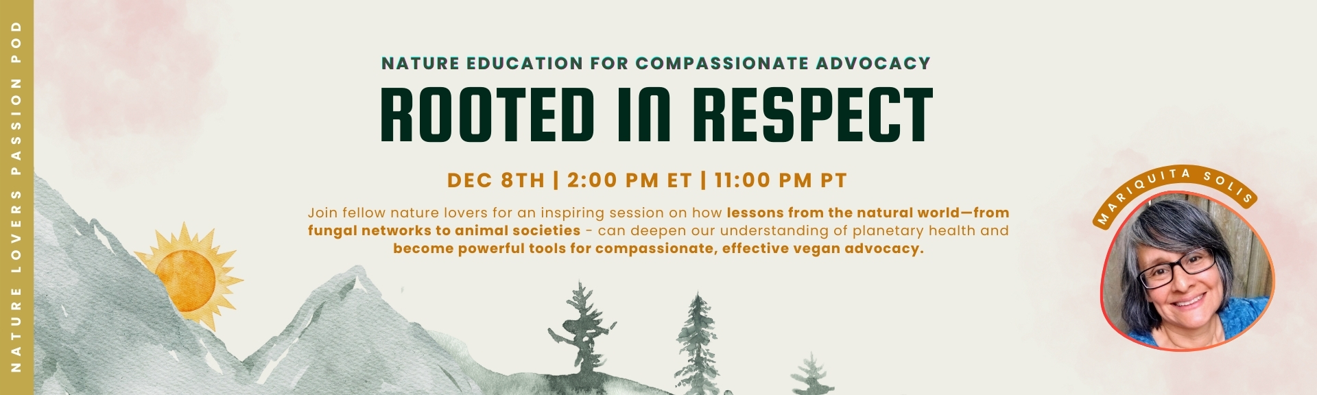 Discover how the natural world can deepen, soften, and strengthen your advocacy. Rooted in Respect is an uplifting session designed for vegan advocates and nature lovers who want to communicate compassion in a welcoming, grounded, and truly resonant way.